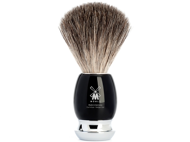 Produktbeschreibung: Mühle Rasierpinsel VIVO Dachshaar Edelkunstharz schwarz