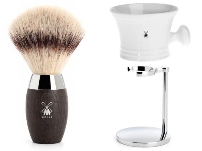 Rasierpinsel Set Angebot Mühle KOSMO Silvertip Fibre® Mooreiche