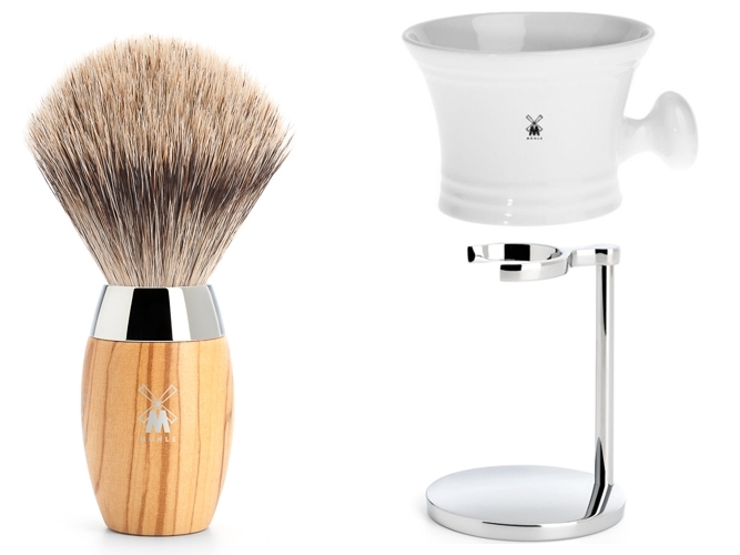 Rasierpinsel Set Angebot Mühle KOSMO feines Dachshaar Olivenholz
